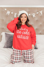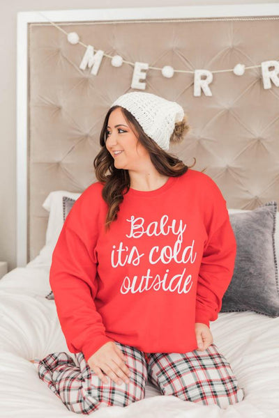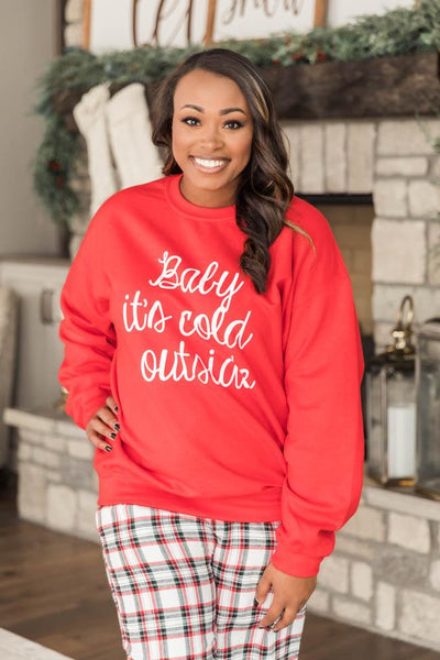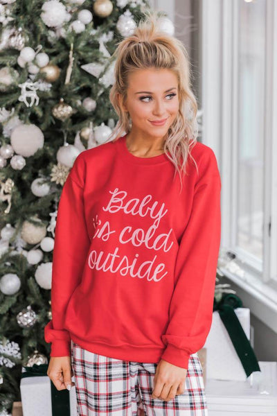 This gorgeous graphic sweatshirt is a must-have for ladies who just want to bundle up somewhere warm this winter! Featuring a beautiful bright red color paired with the cutest script lettering, this classic sweatshirt is sure to make a statement in style! The material is lightweight and cozy - it's so comfortable to wear while viewing holiday lights around town or on a Starbucks run! Just add a cute tee, jeans, and boots to complete this gorgeous look for Christmas morning!