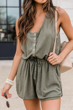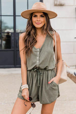 This adorable romper is made for spring and summer fun! Featuring a sweet olive color and soft knit fabric. This romper features pockets, a tie waist, and buttons on the bodice for a laid back style. Pair this adorable romper with a pair of sneakers and a cap for a stylish look!